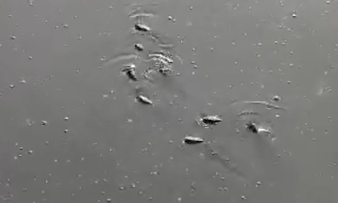 Due to pollution leading to depletion of oxygen, scores of fish can be seen coming over the surface of Brari Nambal waterbody in Kashmir’s capital Srinagar.
