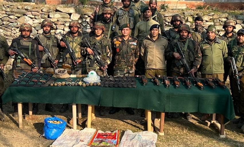 A top police officer said that in a joint operation, Baramulla police along with 3 RR of army recovered huge cache of arms and ammunition from Hathlanga sector of Uri.