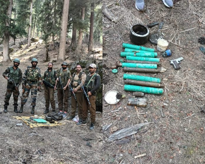 The police said that Kishtwar Police on a specific information launched a CASO along with 11RR in general area of Tillar Forest of Marwah in which a hideout was busted and recovered a huge catch of Arms and ammunition.